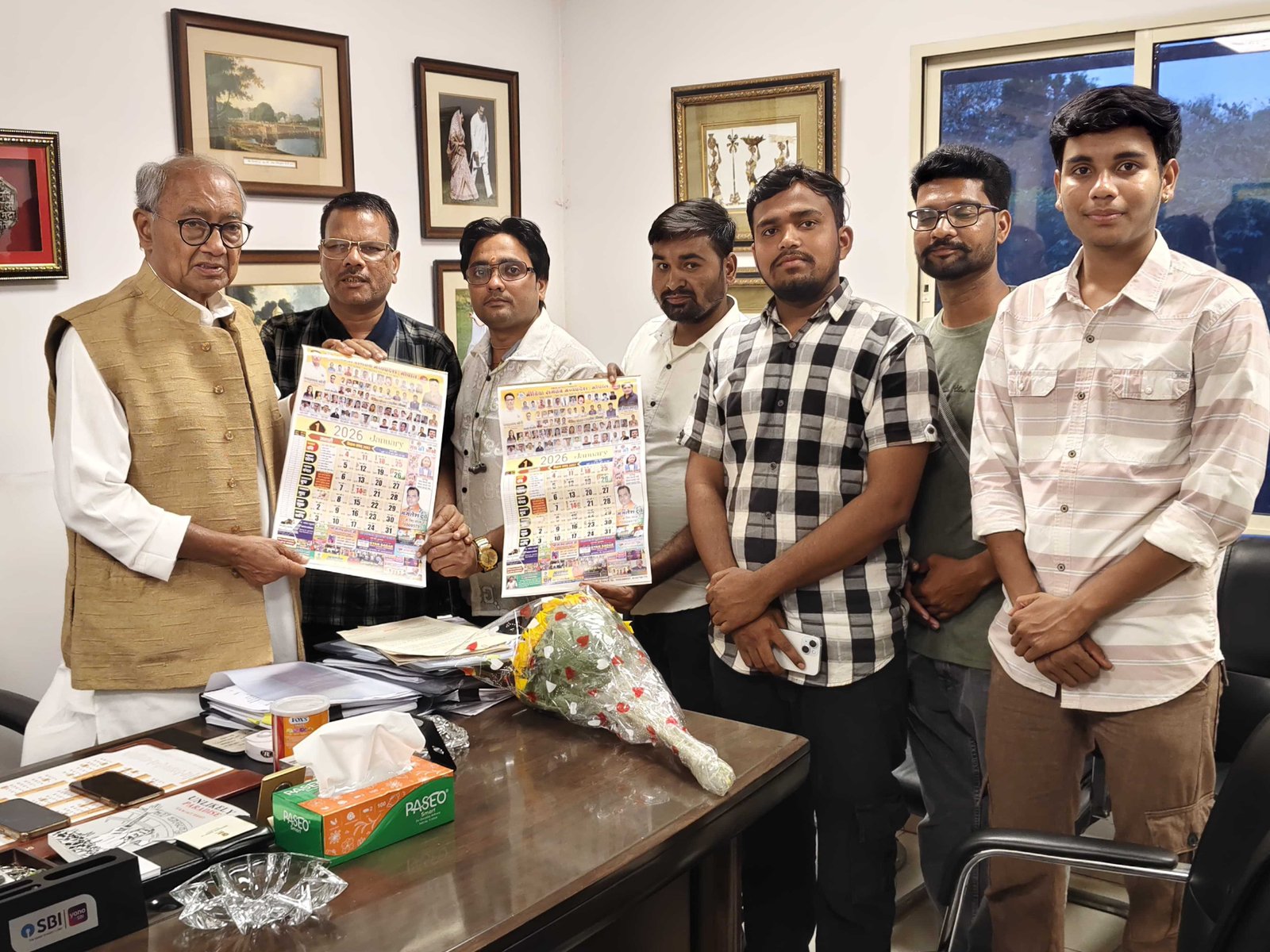 दिल्ली में मध्यप्रदेश के पुर्व मुख्यमंत्री दिग्विजय सिंह को मीडिया संगठन मध्यप्रदेश के वार्षिक कैलेंडर भेंट करते हुए मीडिया संगठन मध्यप्रदेश के प्रदेशाध्यक्ष गयाप्रसाद सोनी एवं उनकी टीम