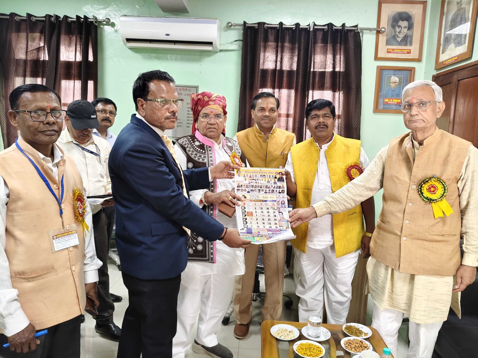 दिल्ली में अनुसूचित जनजाति के केन्द्रीय मंत्री एवं सलाहकार को मीडिया संगठन मध्यप्रदेश का वार्षिक कैलेंडर भेंट करते हुए